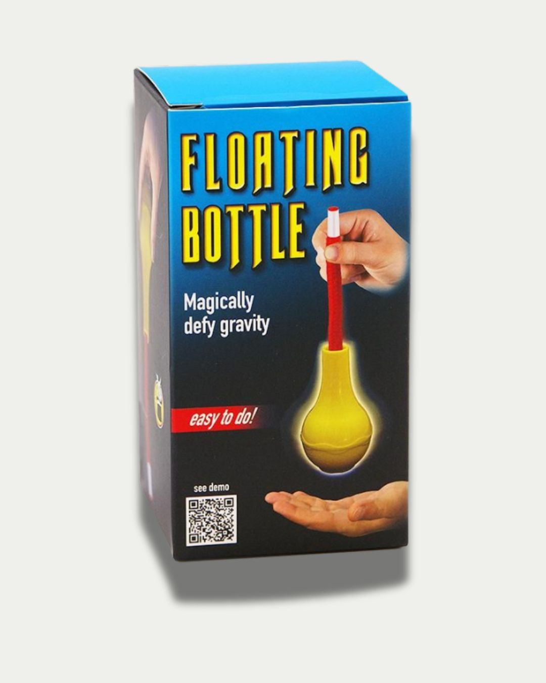 Pero aún hay más: tras devolver la cuerda y la botella a su posición normal, el mago suelta la botella… y esta queda suspendida colgando misteriosamente de la cuerda.